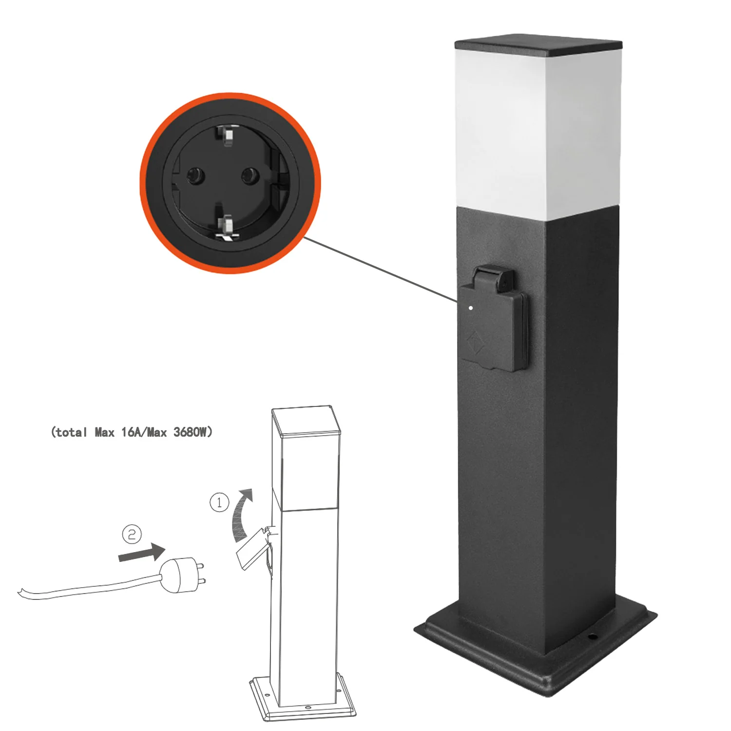 Poste Baliza Jardin Ip44 Con Enchufe Negro