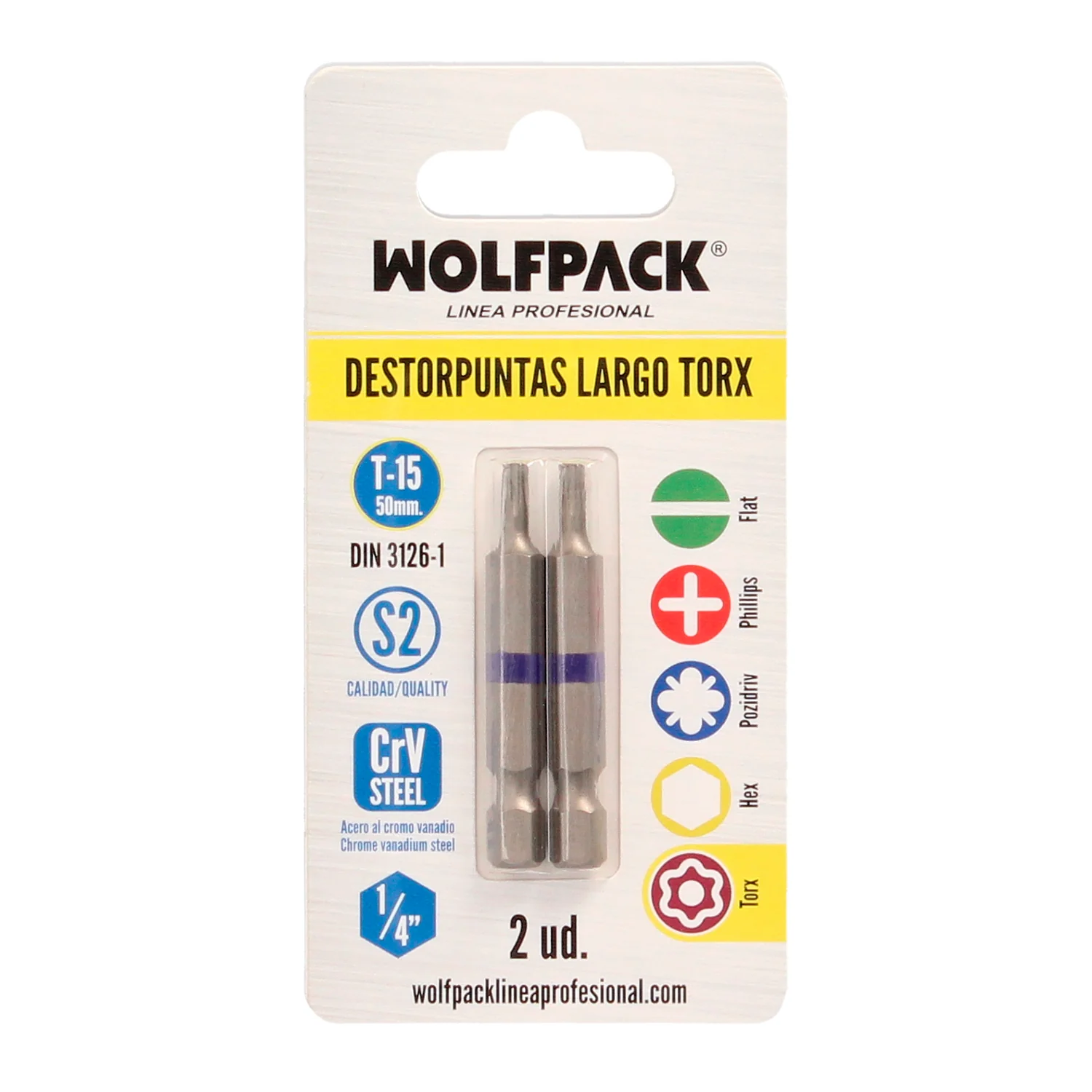 Puntas Largas Destornillador Torx T15 (2 Piezas). Acero S2 al Cromo Vanadio. Puntas Hexagonales, Destorpuntas,