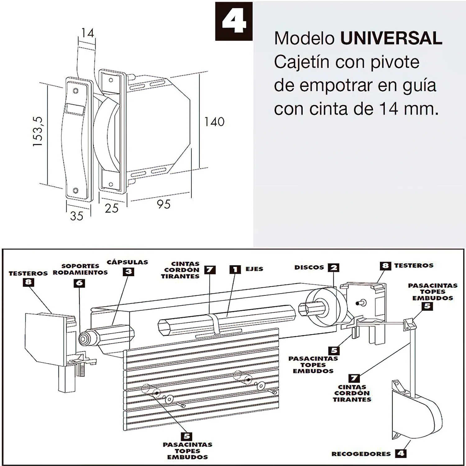 Recogedor Persiana Mini 6 Metros Embutir Cinta 14 mm.