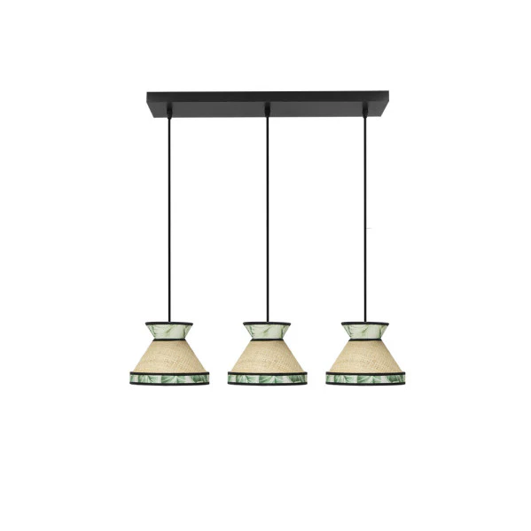 Palabras Clave: Regleta colgante, lámpara colgante, lámpara de techo, iluminación interior, diseño moderno, estilo rústico, Fabrilamp / Abrila, CONSTANTINOPLA, beis, verde, textil, metal, 3xE27.