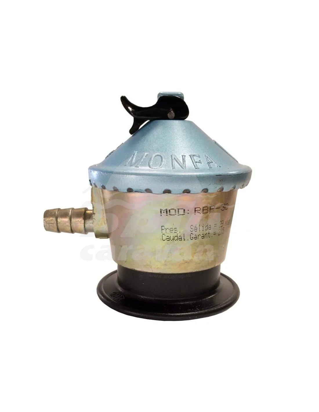 Regulador Gas Butano Monfa (30 Grms./cm2) Alcachofa Gas, Regulador Gas Butano. Presión 29 mbar. Caudal 2,5 Kg/hora