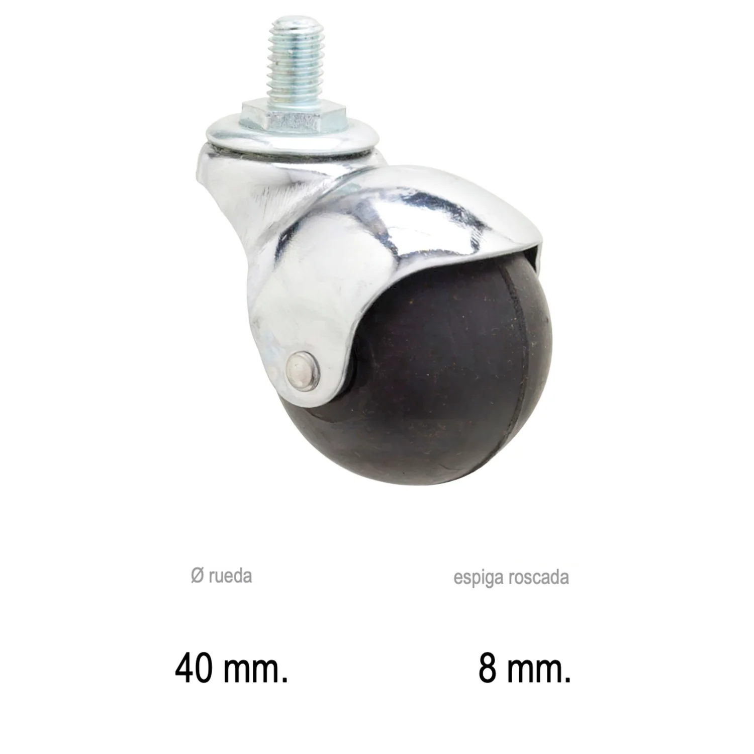 Rueda Domestica Goma Negra Esfera Espiga M8x40 mm.