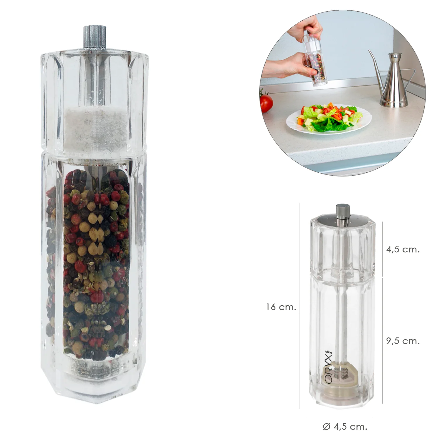 • Ideal para condimentar / salpimentar sus comidas o cenas