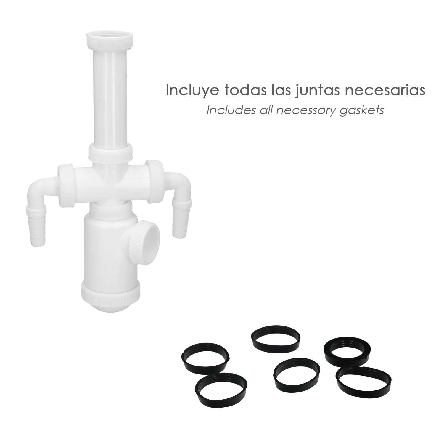 - Artículo también conocido como desagüe lavadora, sifon extensible, sifón lavadora, sifon botella doble, etc