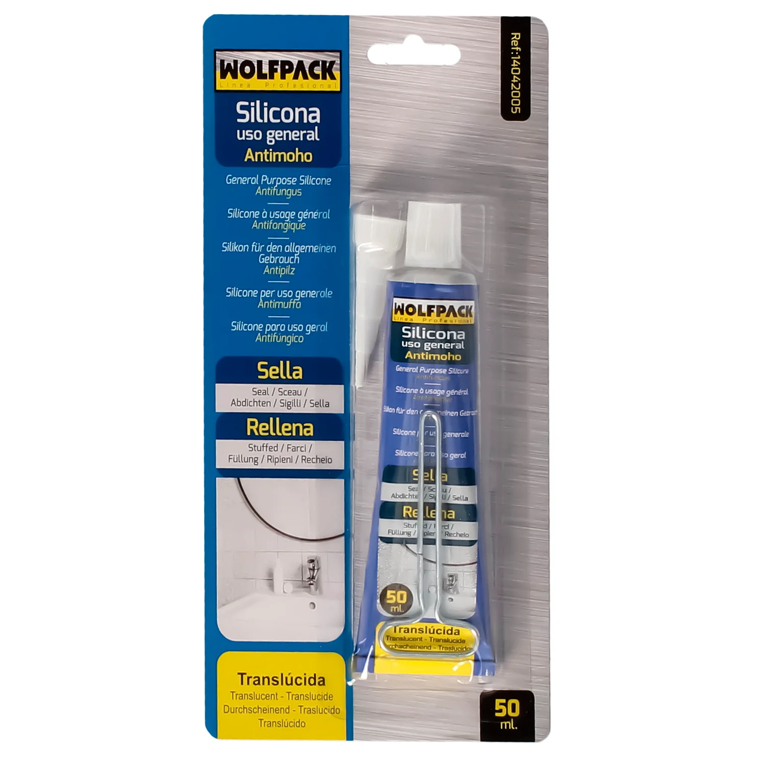 Silicona acida antimoho de la marca WOLFPACK LINEA PROFESIONAL.