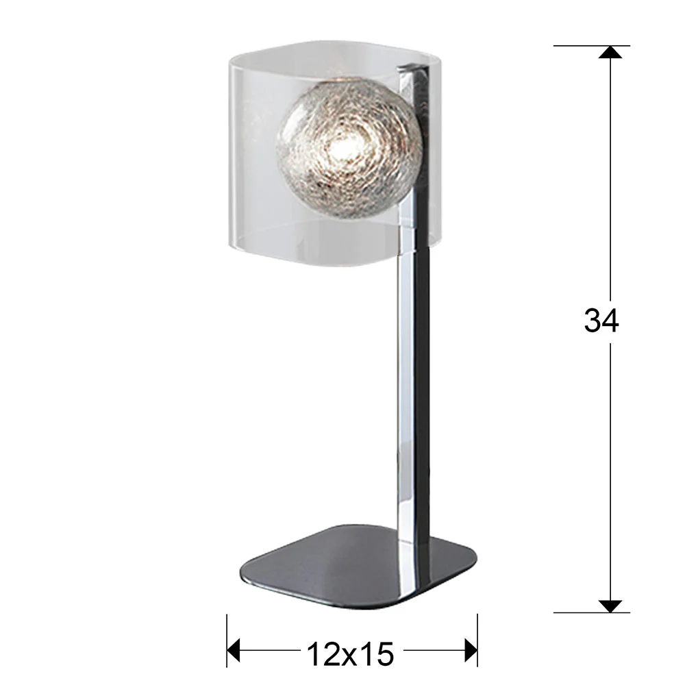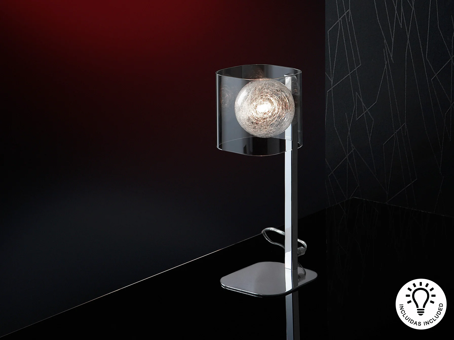 Descubre la elegante SOBREMESA 1L ECLIPSE de Schuller, disponible en LUZGURÚ. Esta lámpara de sobremesa combina a la perfección el metal acabado cromo con una tulipa de cristal moldeado, creando una atmósfera sofisticada y cálida en cualquier espacio. Su diseño moderno y atemporal la convierte en una pieza clave para complementar tu decoración. La bola interior, decorada con filamentos de cristal, difunde una luz suave y atractiva. ¡Dale un toque de estilo a tu hogar con la calidad y el diseño inigualable de Schuller!