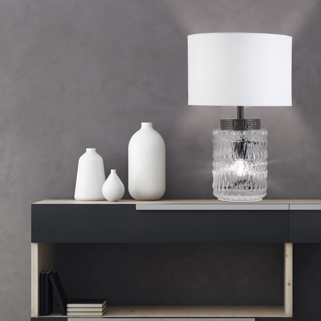 Sobremesa MALMO Negro-Cristal 2x60W E27 | AJP/Alemar | 10871