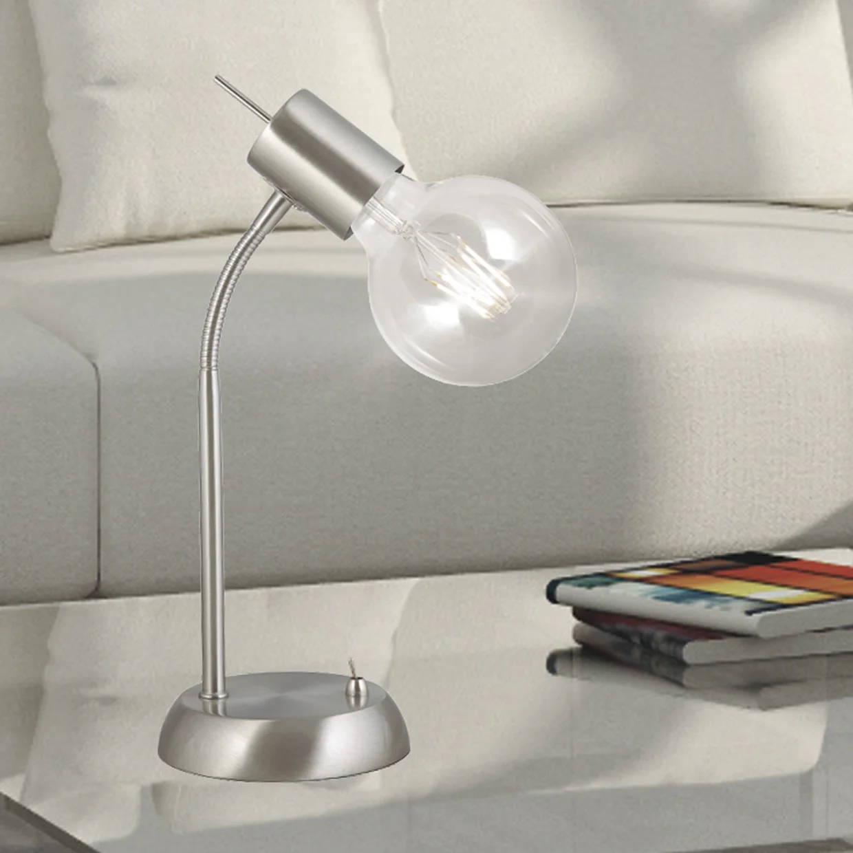 La sobremesa Tenor de AJP / Alemar utiliza bombillas con casquillo E-27, con una potencia máxima de 60W. Puedes encontrarla en LUZGURÚ.
