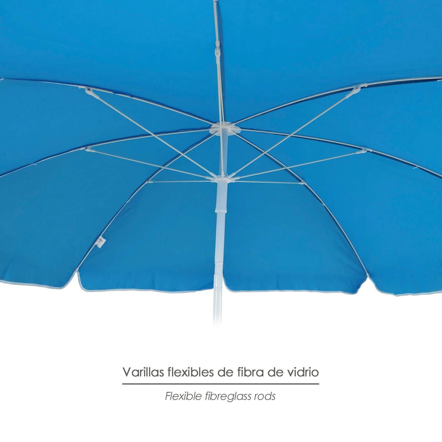 Sombrilla Playa Acero / Poliester Ø 180 cm. Azul. Varillas Fibra De Vidrio.