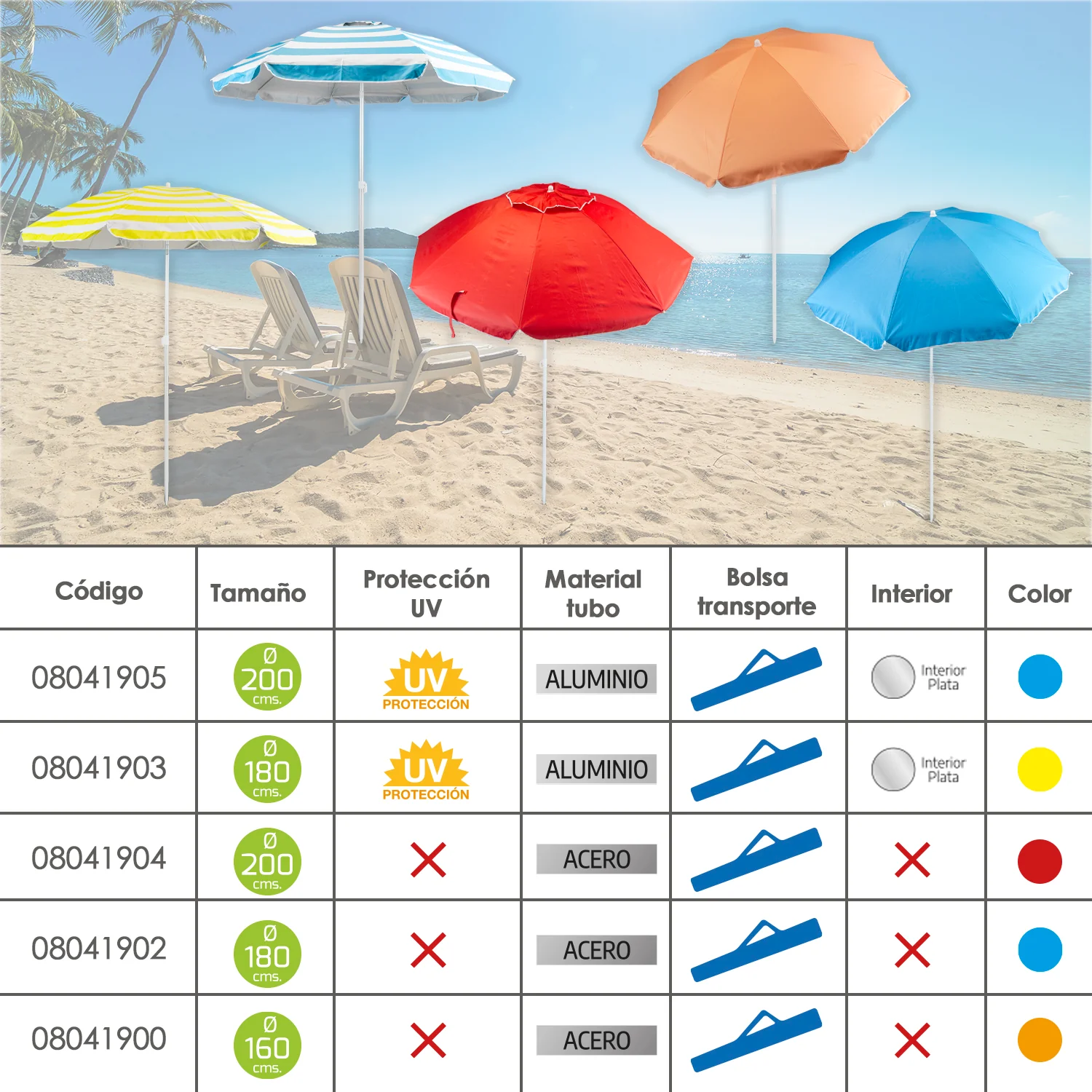 -Artículo también conocido como sombrilla playa, sombrilla, sombrilla inclinable, parasol playa, parasol jardín, etc.