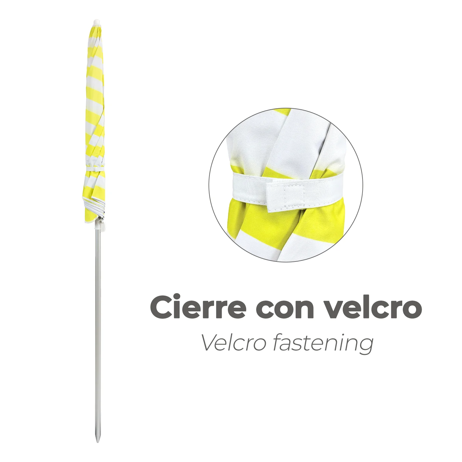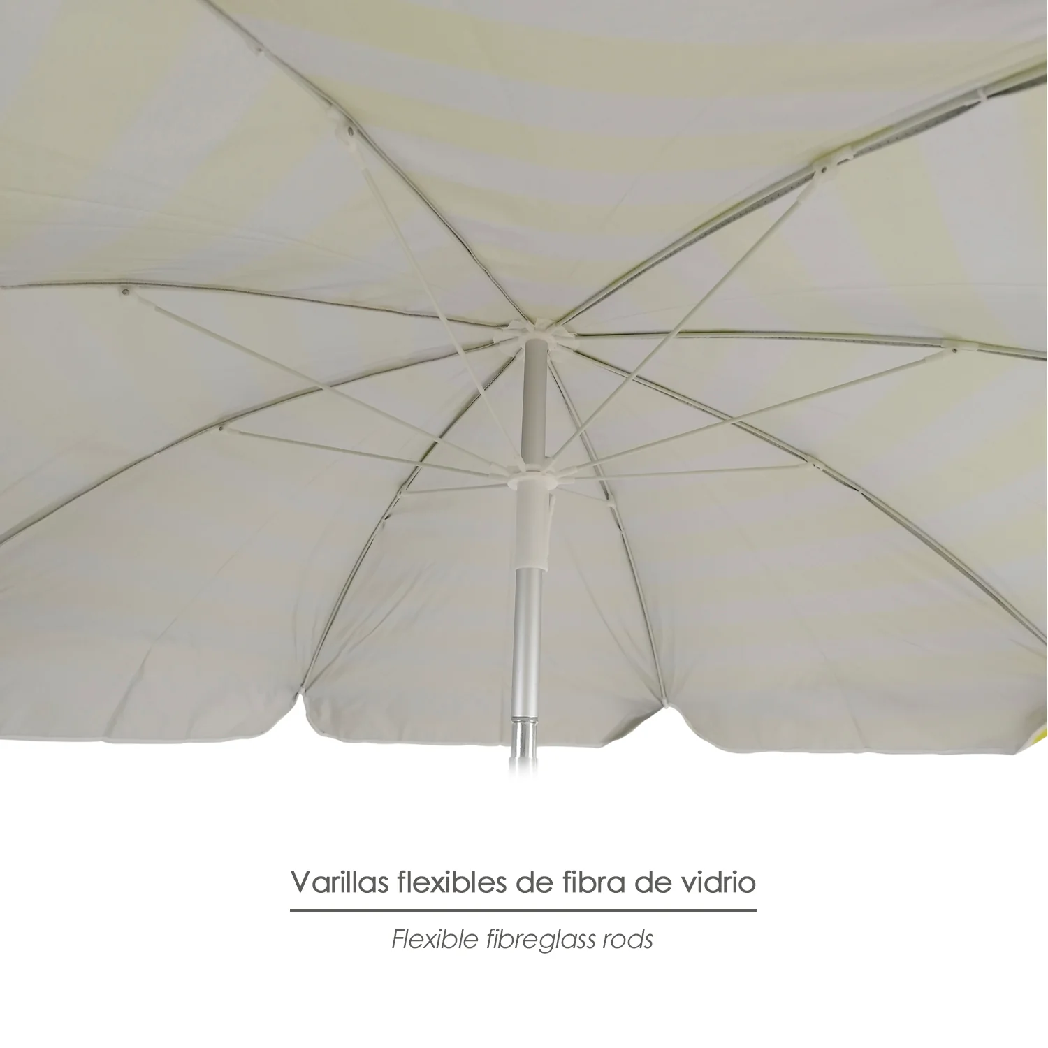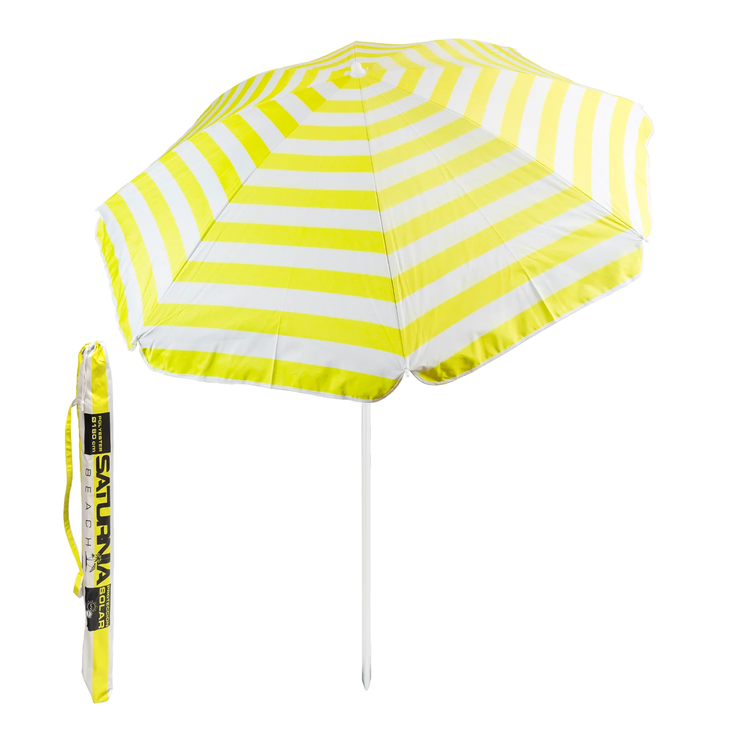 Sombrilla Playa Aluminio / Poliester Ø 180 cm. Amarilla y Blanca. Varillas Fibra De Vidrio. Protección UV.