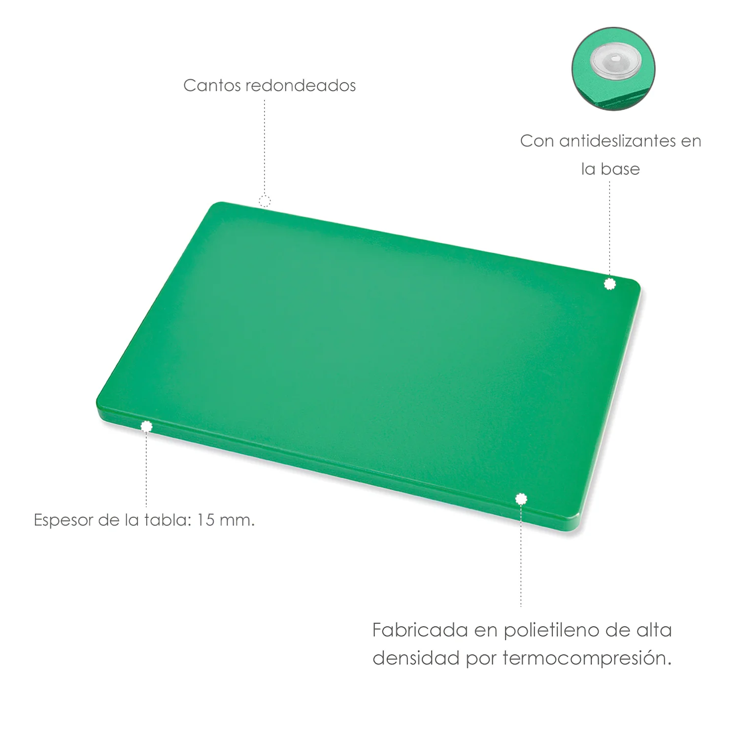 Tabla Cortar Polietileno 30x20x1,5 cm. Color Verde