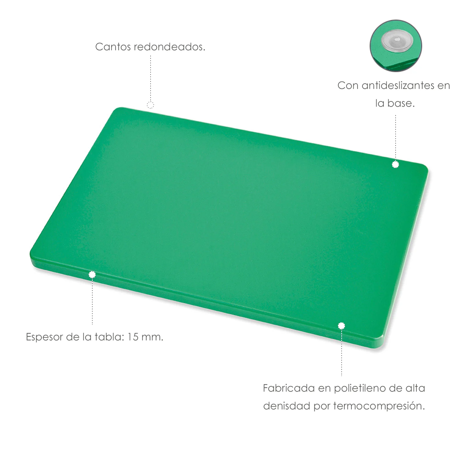 Tabla Cortar Polietileno 35x25x1,5 cm. Color Verde