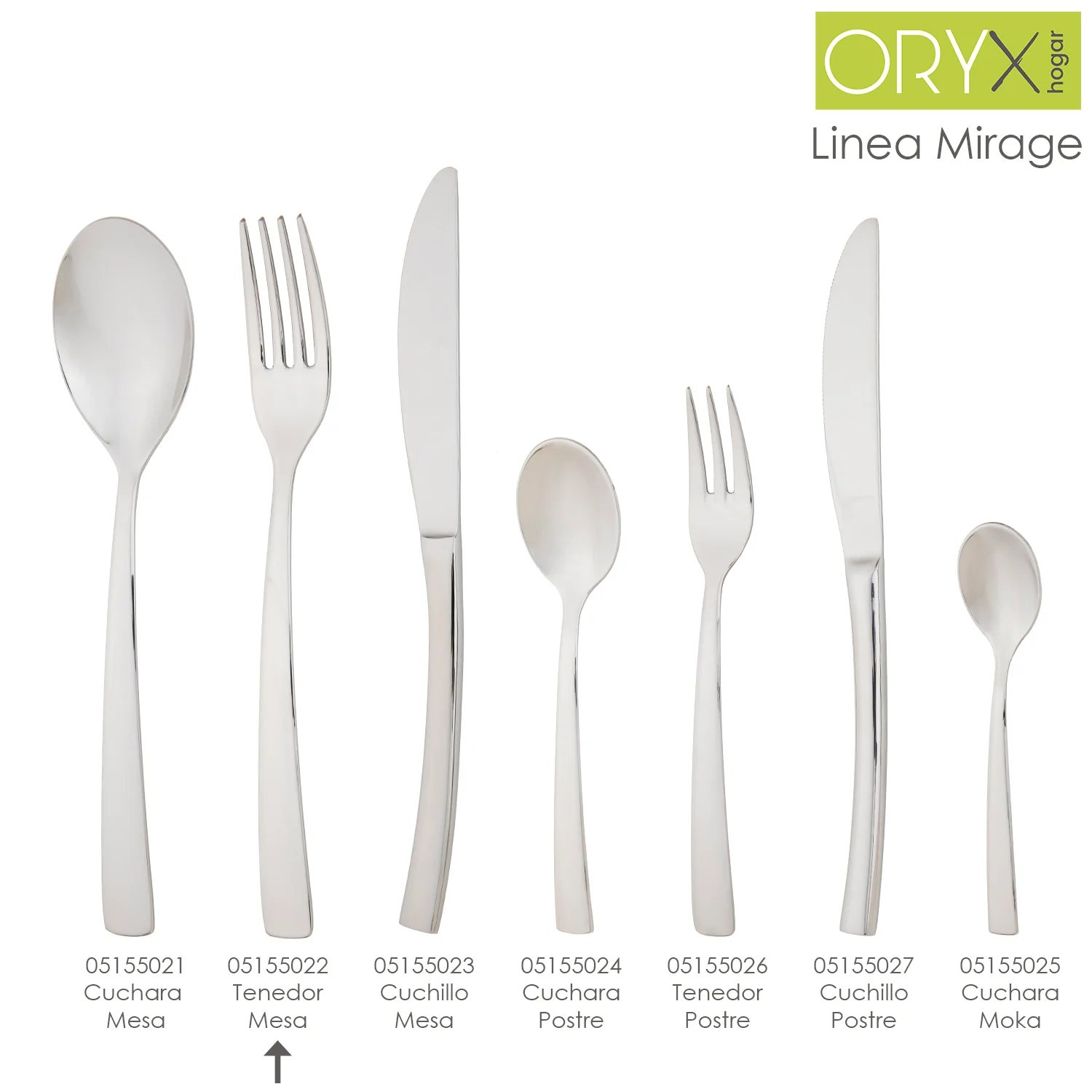Más información y guía de uso: Cuberterías en acero inoxidable con diseño equilibrado; juegos por servicios o piezas sueltas para vestir la mesa. Este producto pertenece a la categoría Cubiertos serie Mirage de VicHome, donde encontrarás productos similares y sus variantes.