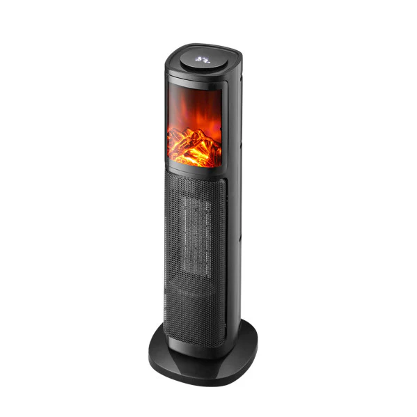 Termoventilador Cerámico PTC Enebro 2000W: el calefactor de torre ideal para combatir el frío invernal con eficiencia y estilo. Su tecnología PTC cerámica no solo calienta rápidamente hasta 2000W, sino que distribuye el aire caliente de forma uniforme gracias a su oscilación automática, ahorrando energía y manteniendo tu hogar acogedor sin picos de consumo. Imagina llegar a casa después de un día helado y encender este termoventilador negro elegante que simula el efecto de una chimenea con llamas suaves, creando un ambiente relajante en minutos, perfecto para salones o dormitorios. Con termostato regulable y mando a distancia, controlas la temperatura ambiente desde el sofá, resolviendo el problema de estancias frías de manera cómoda y segura. Descubre la calidad premium de Abrila, disponible en LUZGURU para una calefacción inteligente y ecológica.