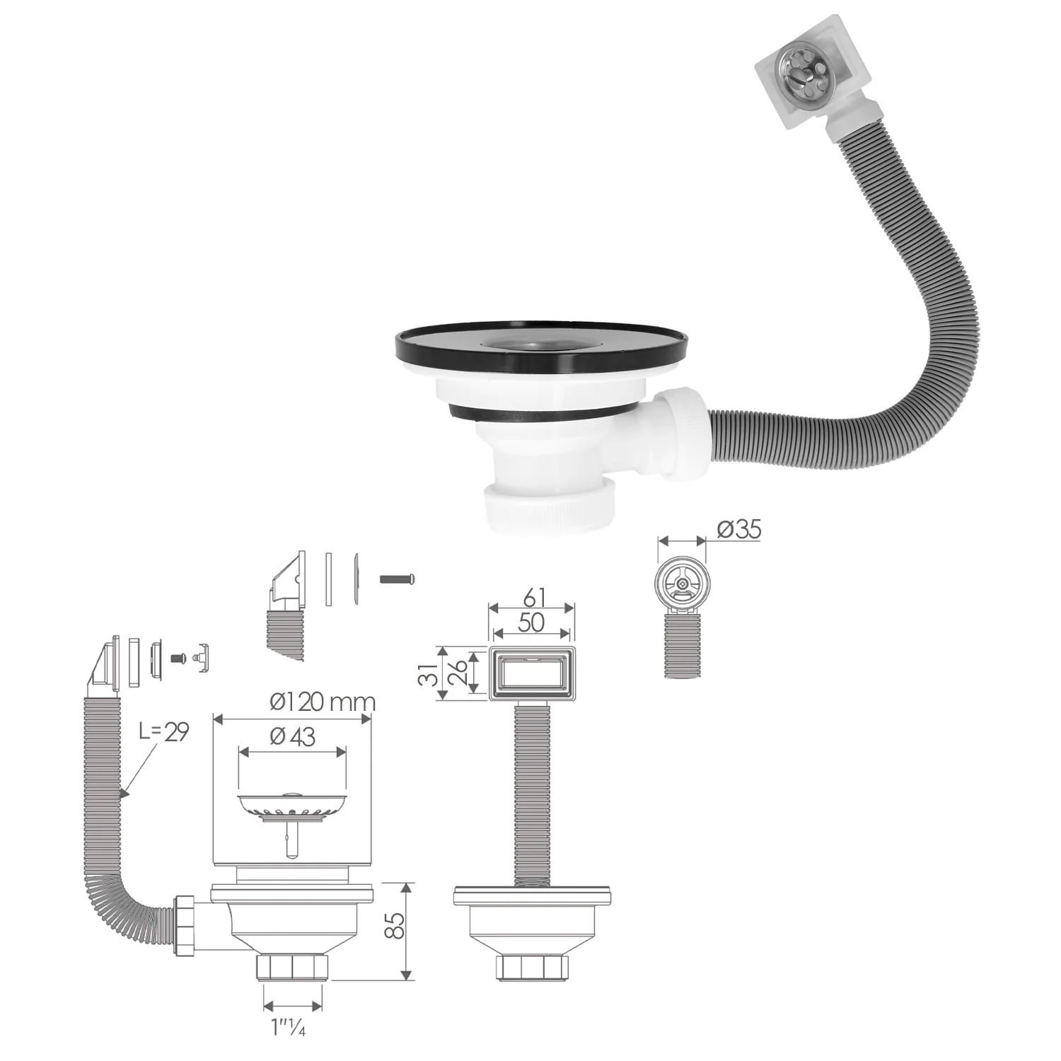 - Artículo también conocido como tubo de desagüe, válvula cesta cocina, fregadero, válvula fregadero, rebosadero, rebosadero cocina, rebosadero para desagüe, etc