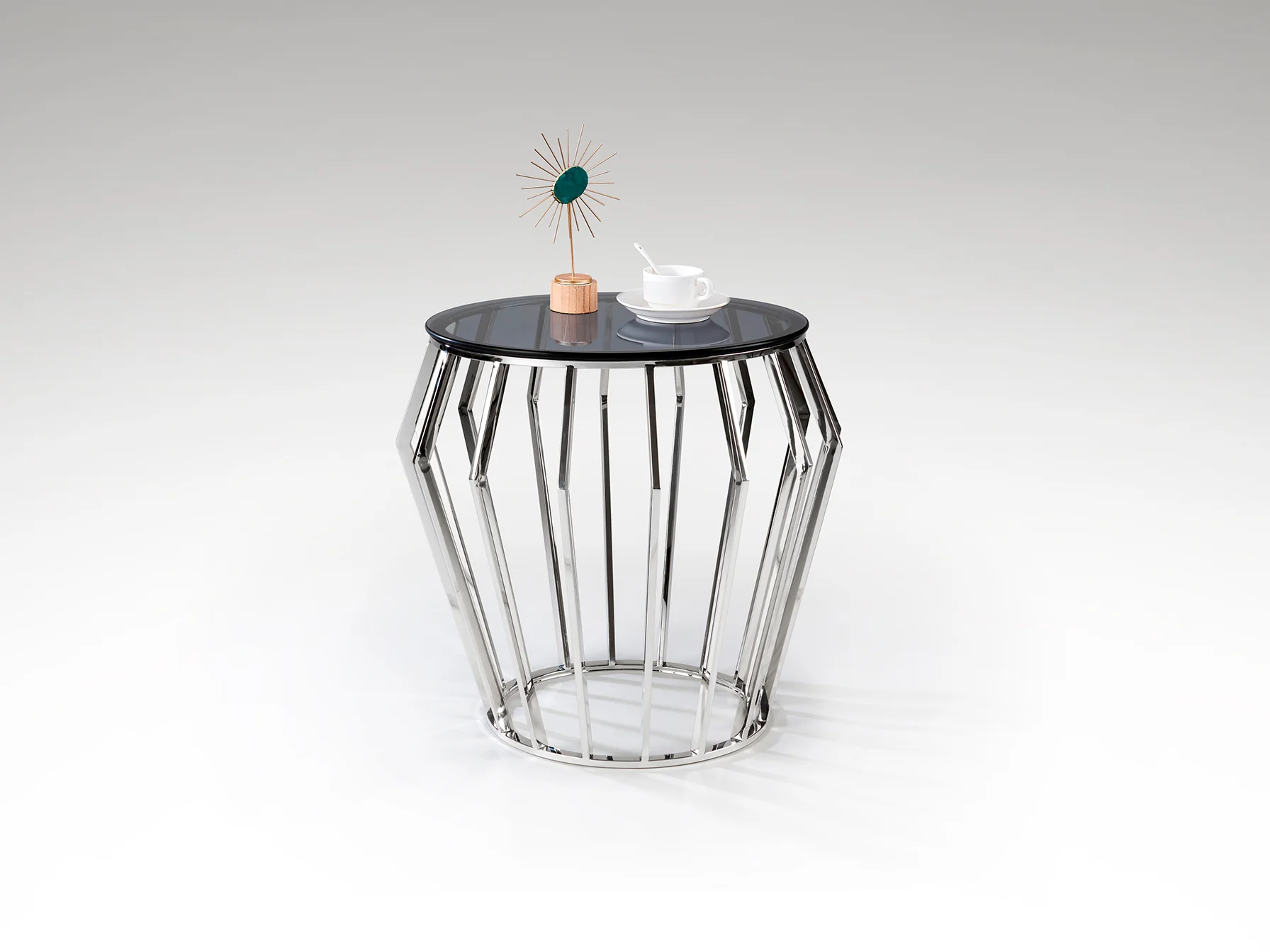 El velador Ciros se entrega completamente montado, listo para disfrutar. Para mantener su brillo y elegancia, se recomienda limpiar la superficie con un paño suave y húmedo. Evitar el uso de productos abrasivos que puedan dañar el acero inoxidable o el cristal.
