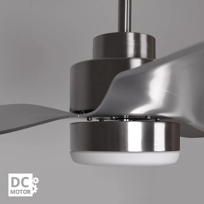 Ventilador DC PONIENTE níquel, 3 aspas, 16W LED 4000K, Al.36xD.116cm