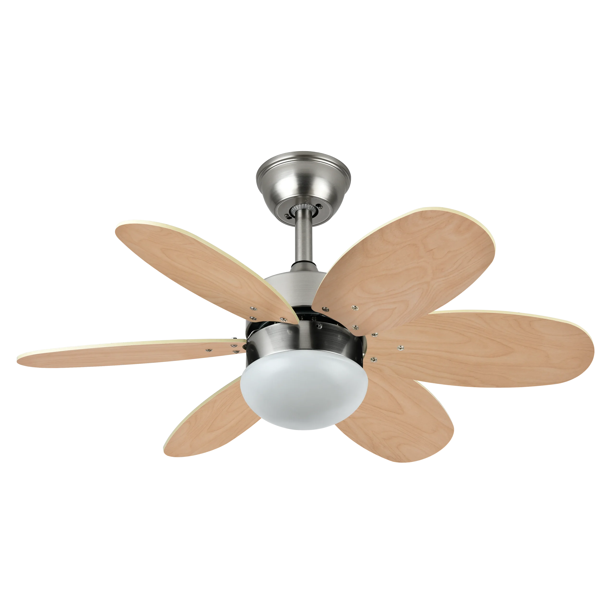 1. Descripción de Ventilador DC Alves 2xE27 Niquel 6 Aspas Rev. Wengue/haya 41x85d C/ Remoto Y Temporizador | Fabrilamp / Abrila