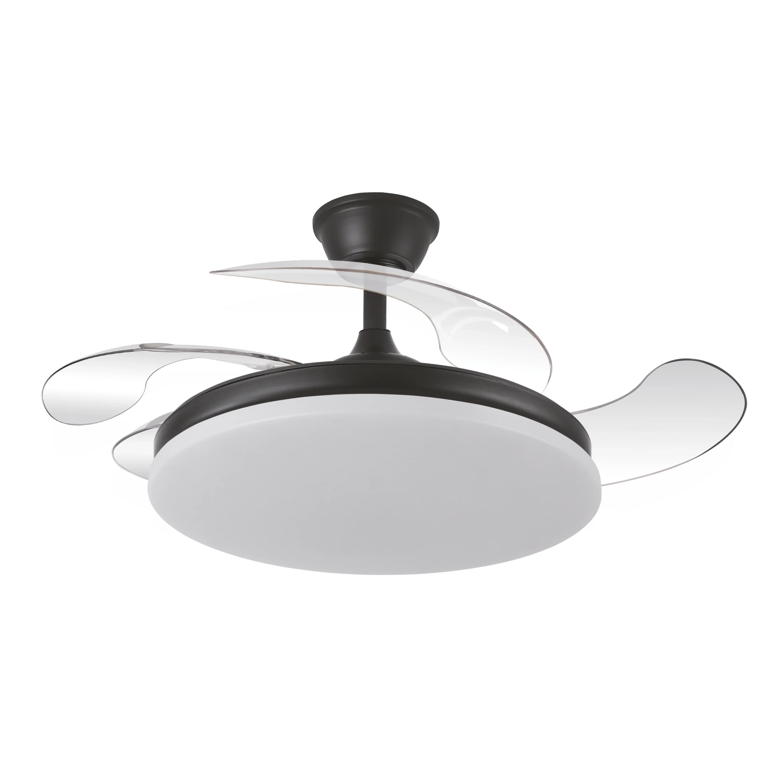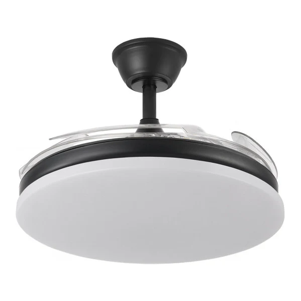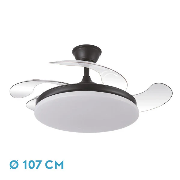 - Aspas Retráctiles de ABS Transparente: Diámetro de 107 cm desplegado para máxima circulación, plegables a 50 cm para un diseño elegante que combina ventilación y lámpara en uno.