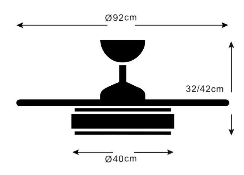 | Dimensiones | Diámetro Aspas Abiertas: 92cm, Diámetro Base/Luz: 40cm, Altura: 32cm / 42cm |