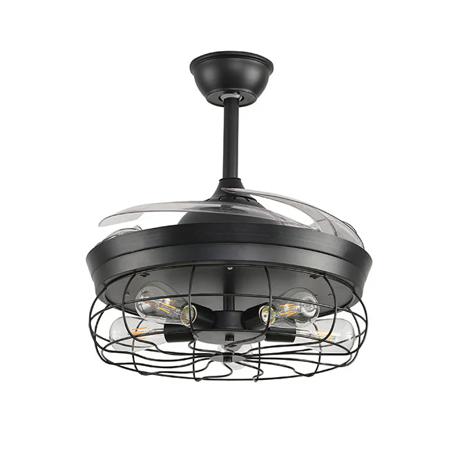 El paquete de Ventilador DC ANTICUARIO negro, 4 aspas retráctiles, 5 bombillas LED 4W E27 2700K, Al.42xD.107/53cm incluye: