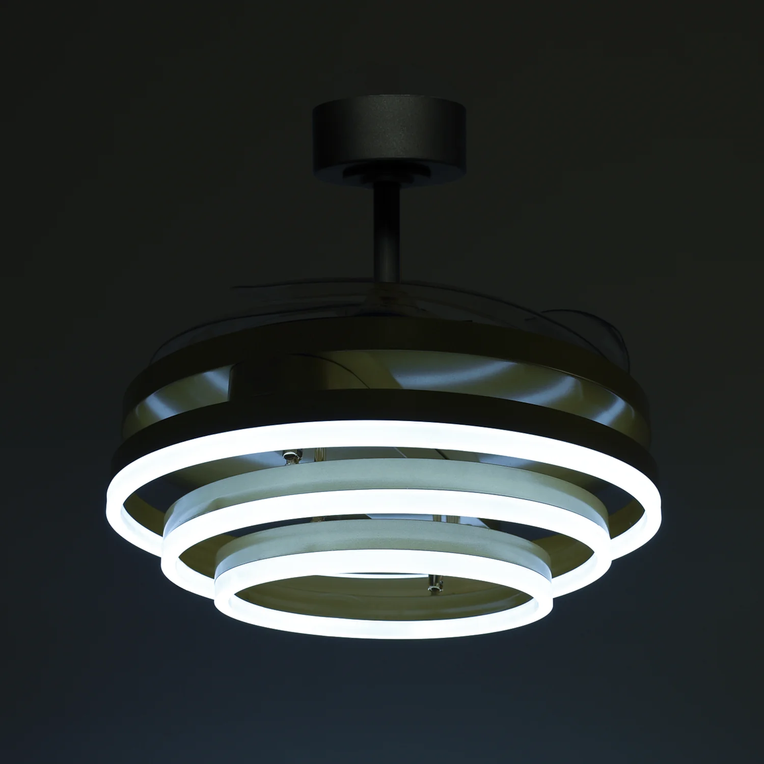 Contenido del Ventilador DC SFERA oro, 4 aspas retráctiles, 72W LED 3000|4000|6000K, Al.45xD.108/50cm de BELAIR