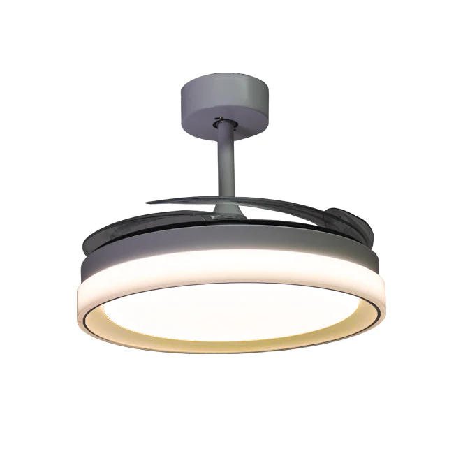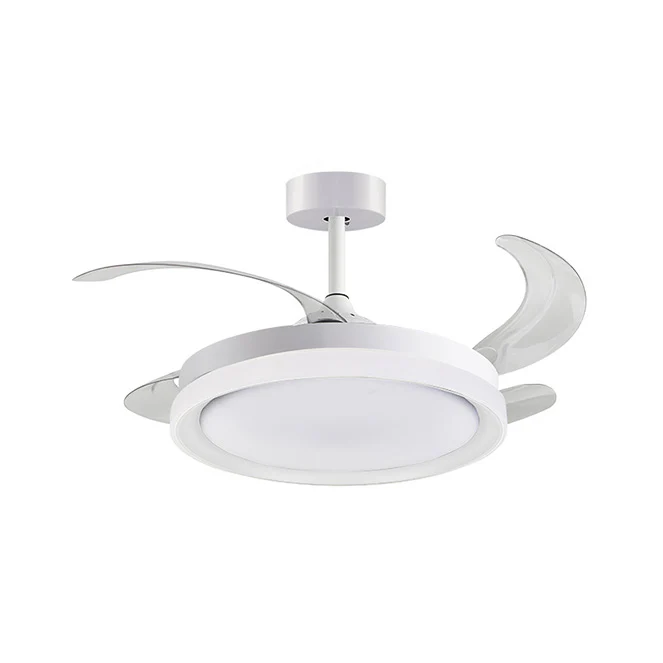 Ventilador DC KIGALI MINI blanco/blanco, 4aspas retráctiles, 48W LED 3000|4000|6000K Al.35xD.91/40cm