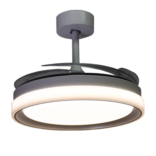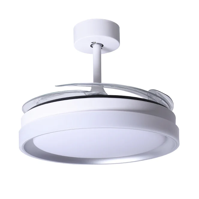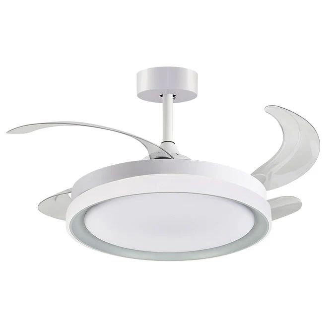 Ventilador DC KIGALI blanco/plata, 4 aspas retráctiles, 72W LED 3000|4000|6000K, Al.35xD.108/50cm