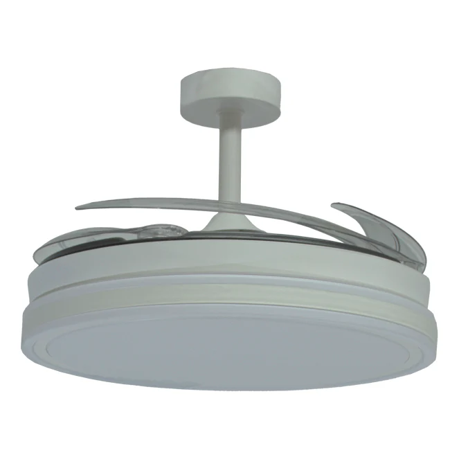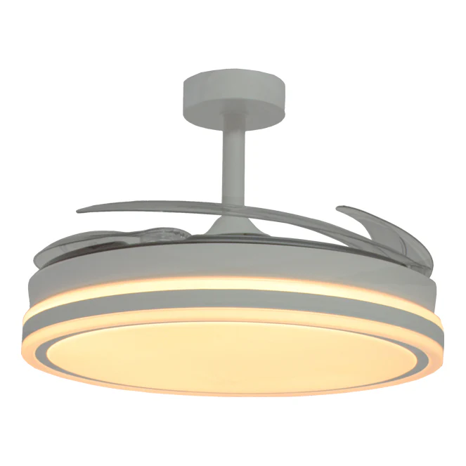 Ventilador DC TROYA blanca, 4 aspas retráctiles, 72W LED 3000|4000|6000K, Al.35xD.108/50cm