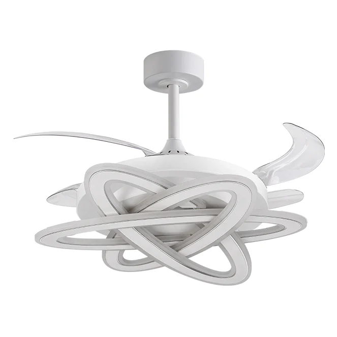 Ventilador DC SATURNO blanca, 4 aspas retráctiles, 200W LED 3000|4000|6000K, Al.35xD.108/50cm