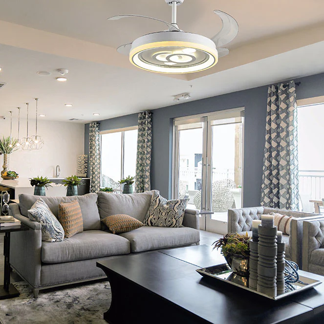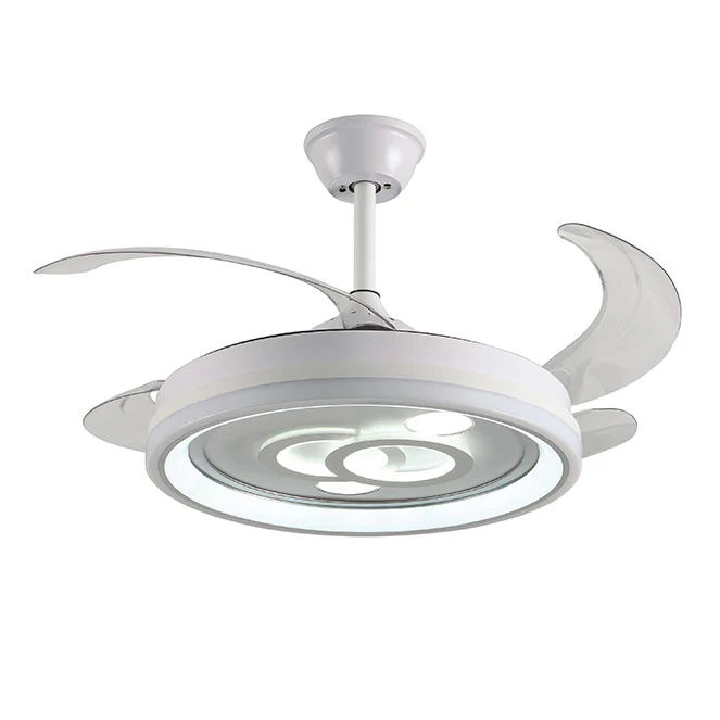 Ventilador DC DAFNE blanco, 4 aspas retráctiles, 72W LED 3000|4000|6000K, Al.35xD.108/50cm
