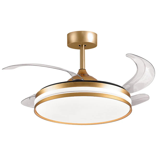 Ventilador DC KEPLER oro, 4 aspas retráctiles, 72W LED 3000|4000|6000K, Al.35xD.108/50cm