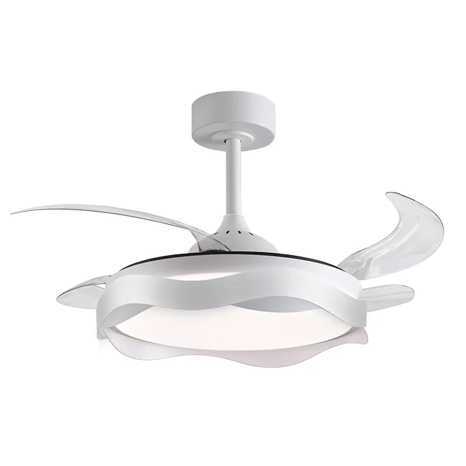 Ventilador DC ONDAS blanca, 4 aspas retráctiles, 72W LED 3000|4000|6000K, Al.35xD.108/50cm