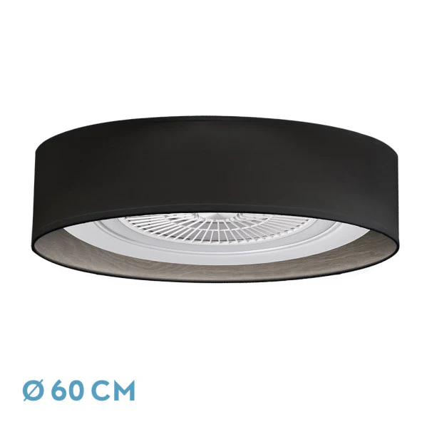 Este elegante ventilador de techo de la serie TANIA, de Fabrilamp / Abrila, presenta un diseño moderno y sofisticado en color NEGRO y MADERA GRIS. Integra 5 aspas y un potente motor DC que proporciona un flujo de aire eficiente y silencioso en 6 velocidades ajustables. Su tecnología LED integrada ofrece 72W de potencia, 6120 lúmenes y tres temperaturas de luz (3000ºK-4000ºK-6000ºK) con regulador de intensidad, para una iluminación adaptable a cualquier ambiente y momento del día. El mando a distancia con memoria de color y temporizador (1-8h) te permite controlar todas las funciones con comodidad. Su pantalla cilíndrica combina a la perfección el negro y la madera gris, creando un ambiente moderno y elegante, perfecto para dormitorios, despachos, salones y salas de estar. Las dimensiones son de 25x60x60 centímetros. Descubre la gama completa de ventiladores TANIA de Fabrilamp / Abrila en LUZGURÚ.